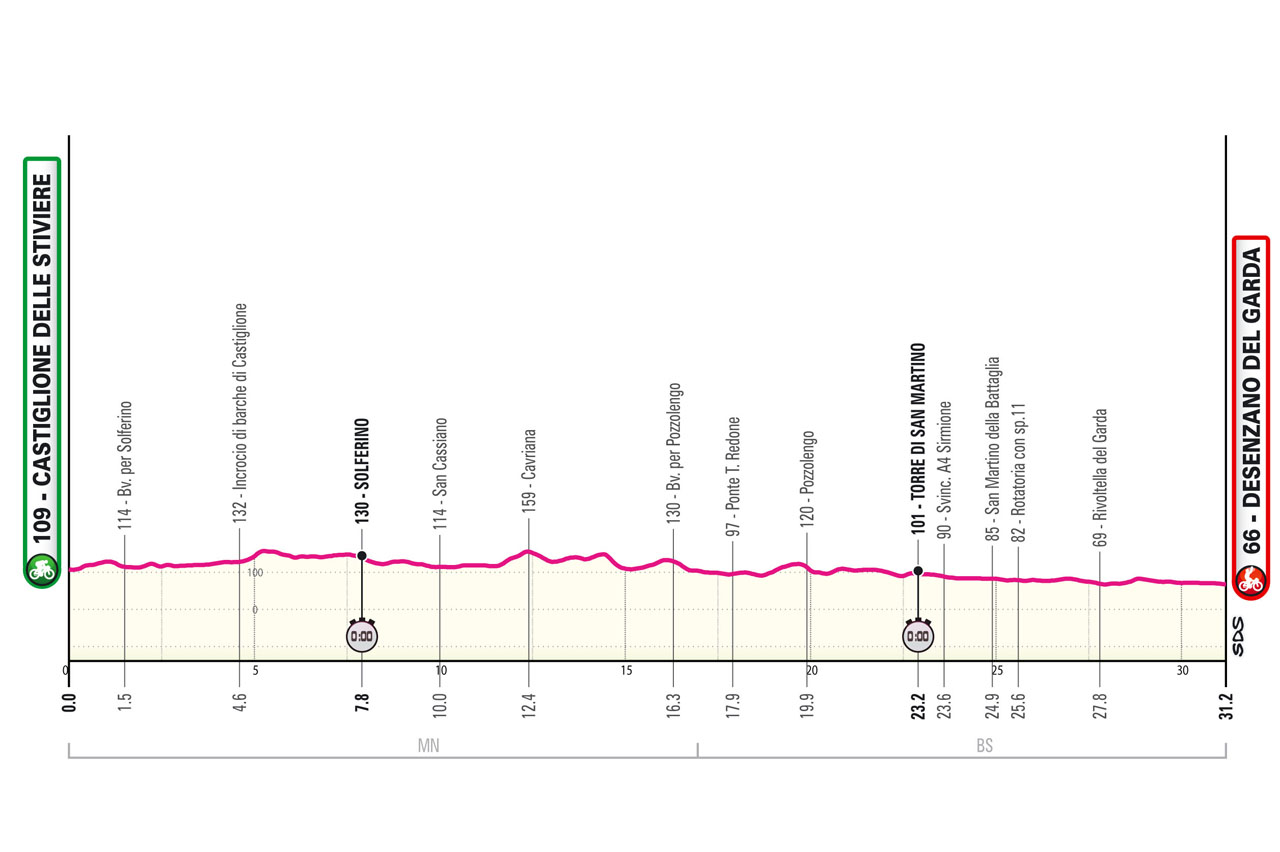 Il traguardo della tappa desenzanese, che partirà da Castiglione, è fissato in via Anelli, prima della rotonda che porta in Piazza Matteotti: ad attendere i ciclisti ci saranno tutti i tifosi per godersi l’atmosfera creata dagli organizzatori del Giro d’Italia con le animazioni dei vari sponsor, le premiazioni dei “progetti kids” per i bambini, le iniziative dei comitati di tappa e molto altro ancora. Si potrà visitare anche “GiroLand”, il villaggio dedicato ad adulti e bambini dove scoprire la storia e i simboli della Corsa Rosa, con attività di intrattenimento e di engagement, dove poter fare una foto con il “Trofeo Senza Fine”, condividerla sui social e divertirsi con tanta musica. Il Giro d’Italia a Desenzano non si limita alla data del 18 maggio, ma va ben oltre con progetti speciali e tantissime iniziative correlate che sono già iniziate con l’illuminazione di rosa di alcune strutture simbolo desenzanesi come Palazzo Todeschini, il Porto Vecchio e il Faro in occasione dei 100 giorni dall’inizio della manifestazione.